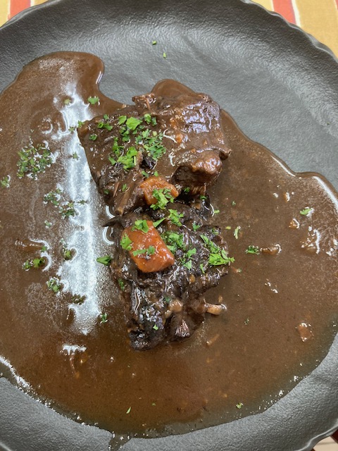 La pièce de boeuf*** accompagnée de son gratin dauphinois, de son duo de haricots et de son endive braisée