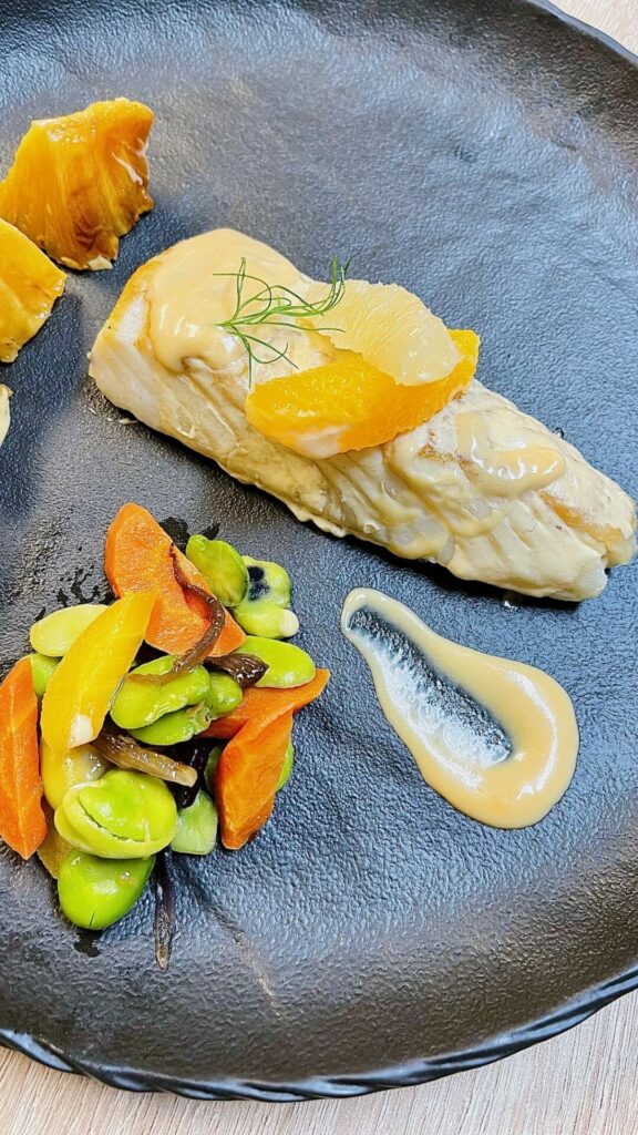 - Plat principal au choix : cuisse de canette confite sauce framboise ou dos de cabillaud sauce agrumes : des créations gastronomiques qui raviront vos papilles et sublimeront l’instant.
